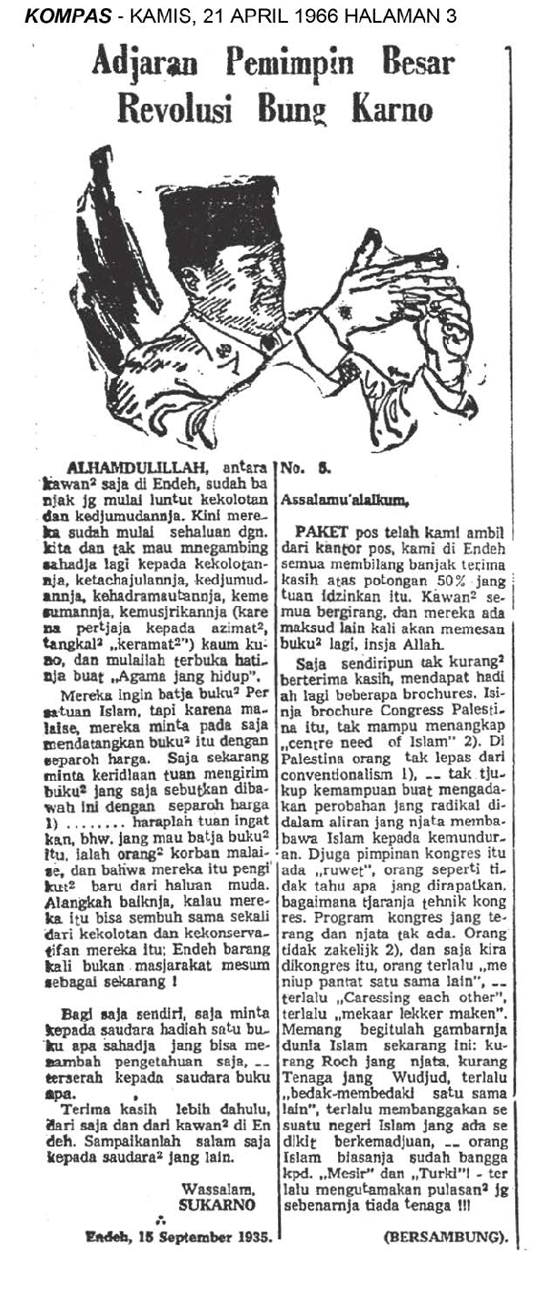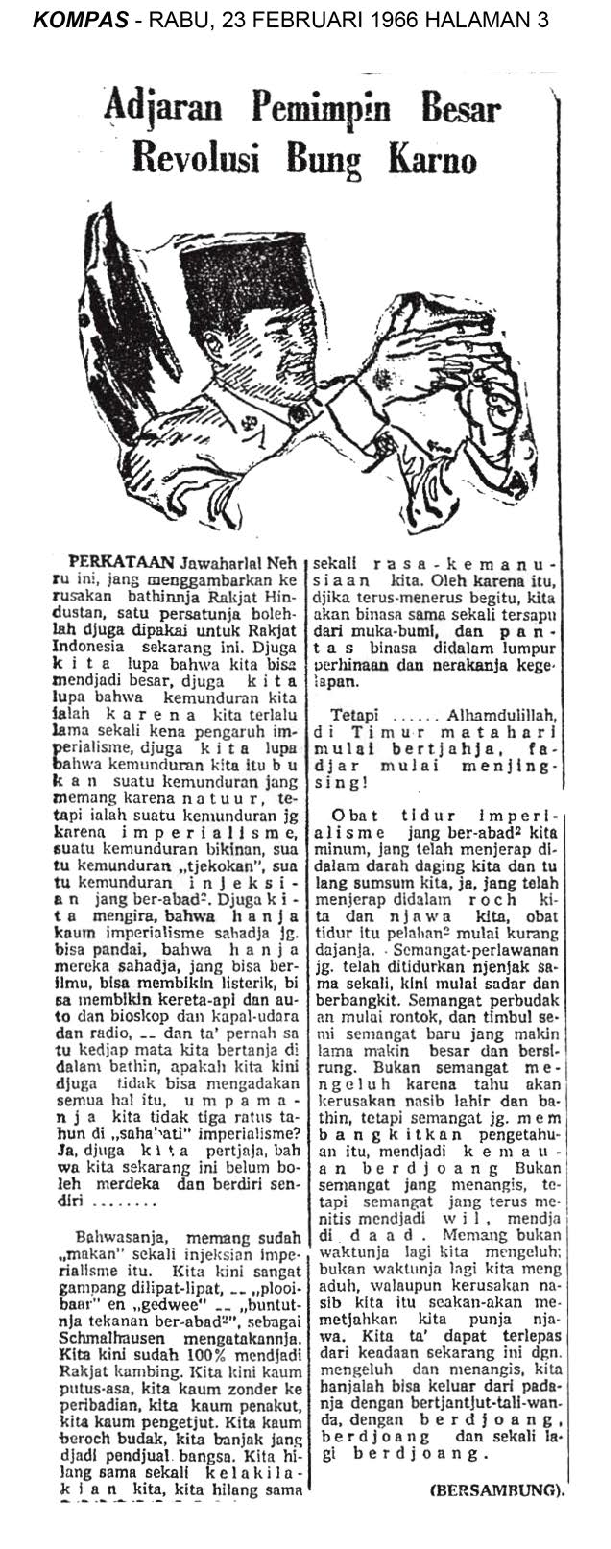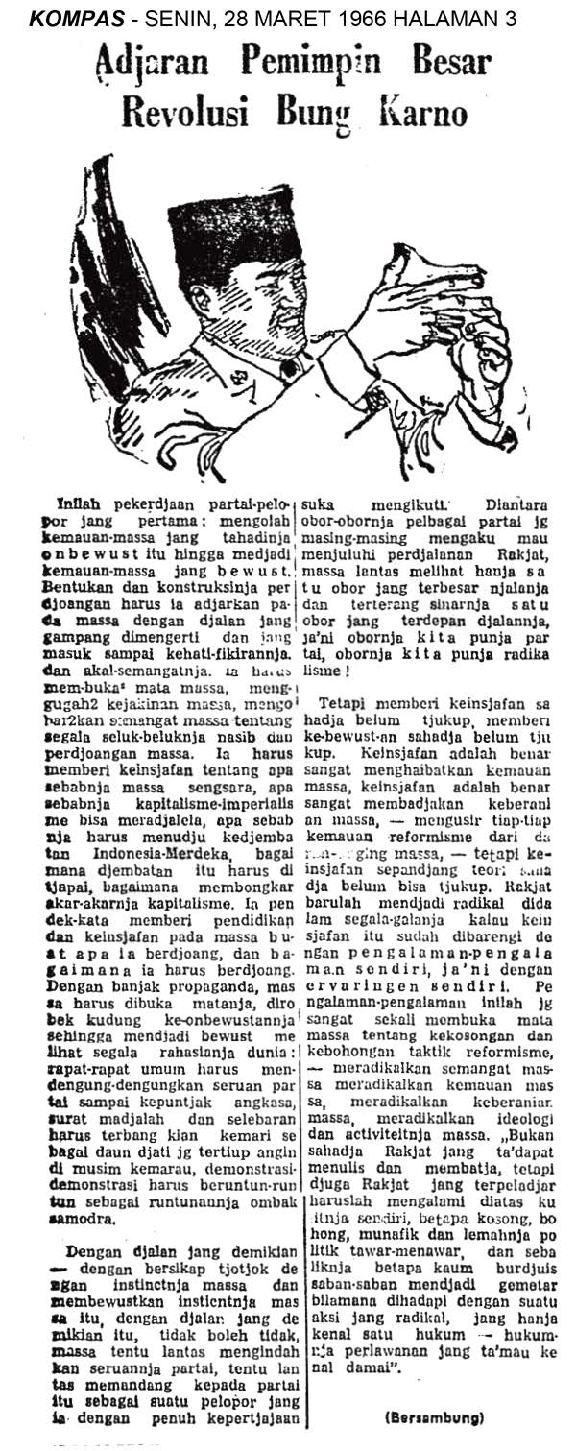 Adjaran Pemimpin Besar Revolusi Bung Karno [kompilasi berbagai berita bung karno kompasdata I]