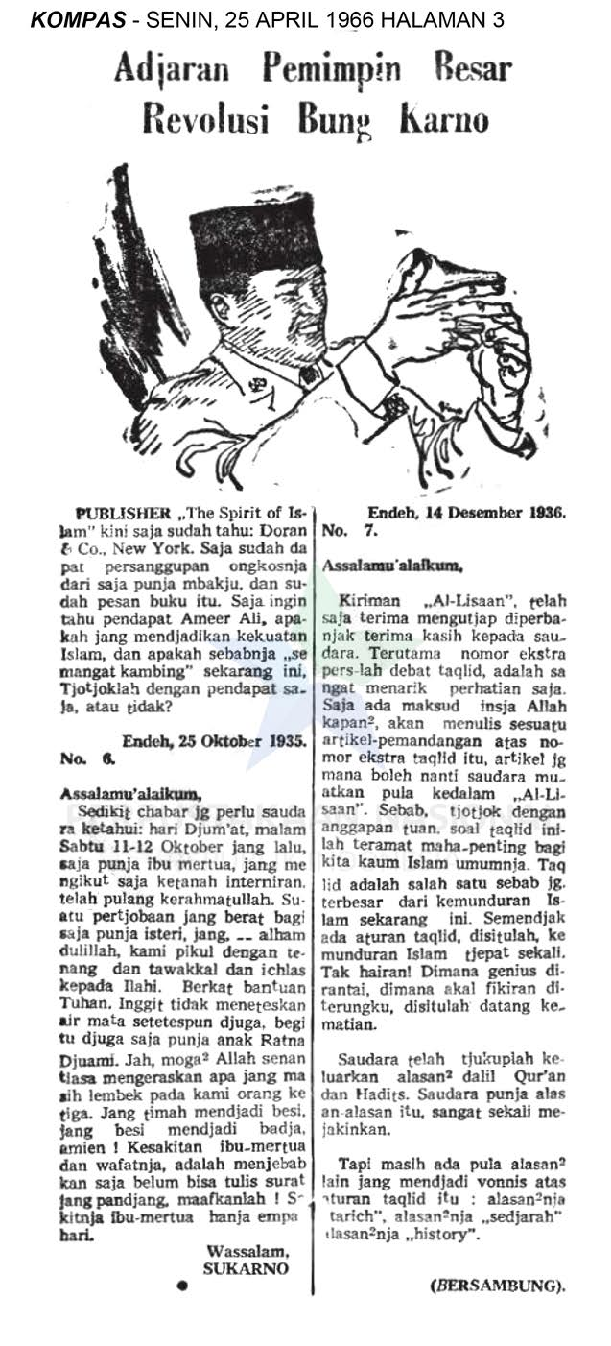 Adjaran Pemimpin Besar Revolusi Bung Karno [kompilasi berbagai berita bung karno kompasdata II]
